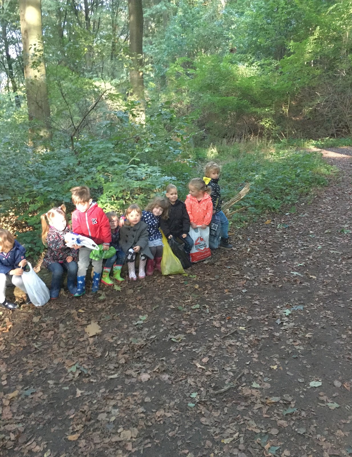 De blaadjes vallen van de bomen. Het is herfst. We gingen op uitstap naar het bos om allerlei herfstschatten te verzamelen. Af en toe namen we ook een kleine pauze om wat te rusten.
