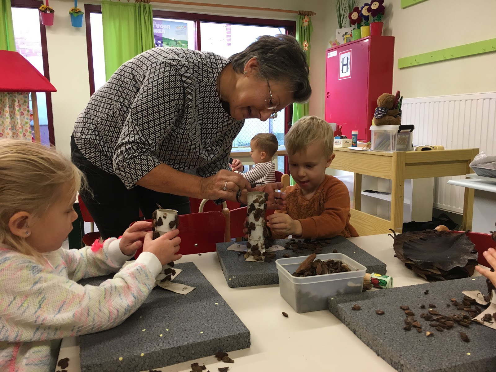 De oma van Niels kwam een mooi herfststukje knutselen.
